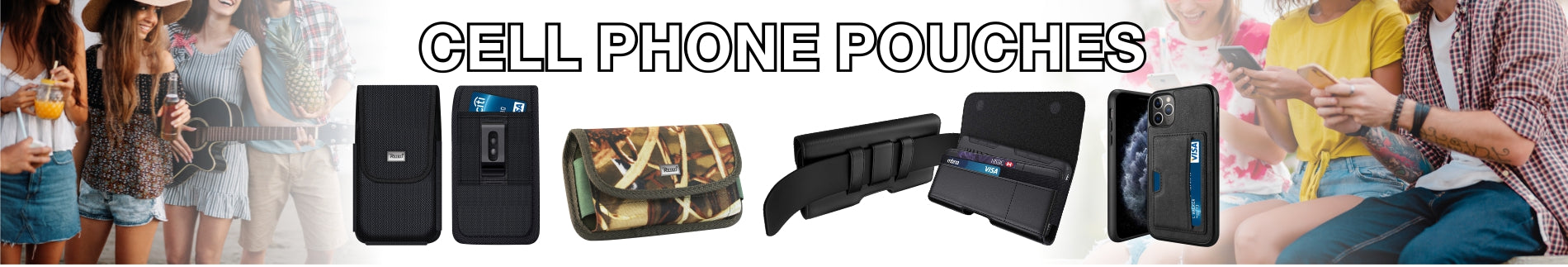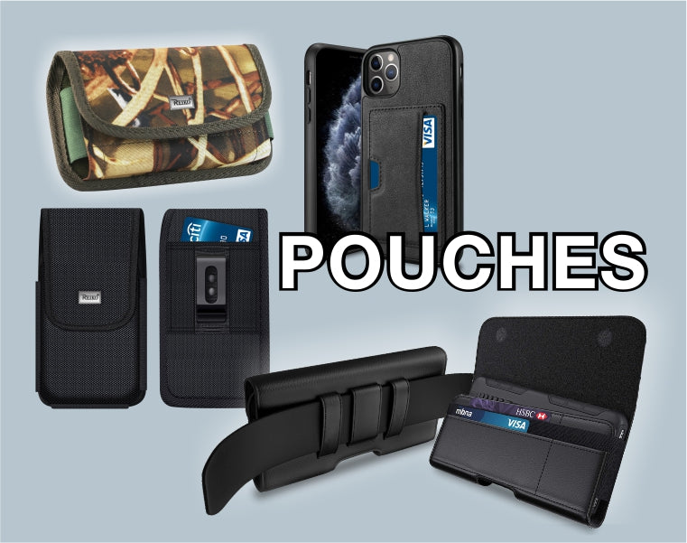 MV Horizontal Leather Pouch With Card Holder In Black (5.8X3.2X0.7 Inches)