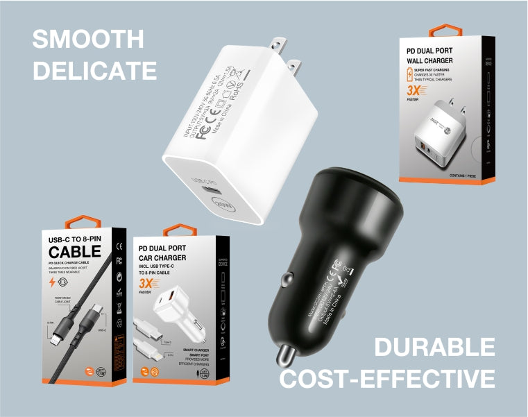 USB & USB-C PD port Dual Car charger In White SKU:CC12-3A5VWH