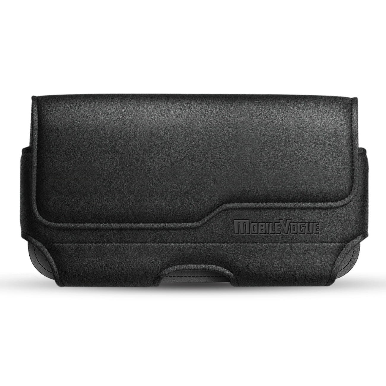 MV Horizontal Leather Pouch With Z Lid Pattern With Embossed Logo In Black (6.1X3.2X0.7 Inches)